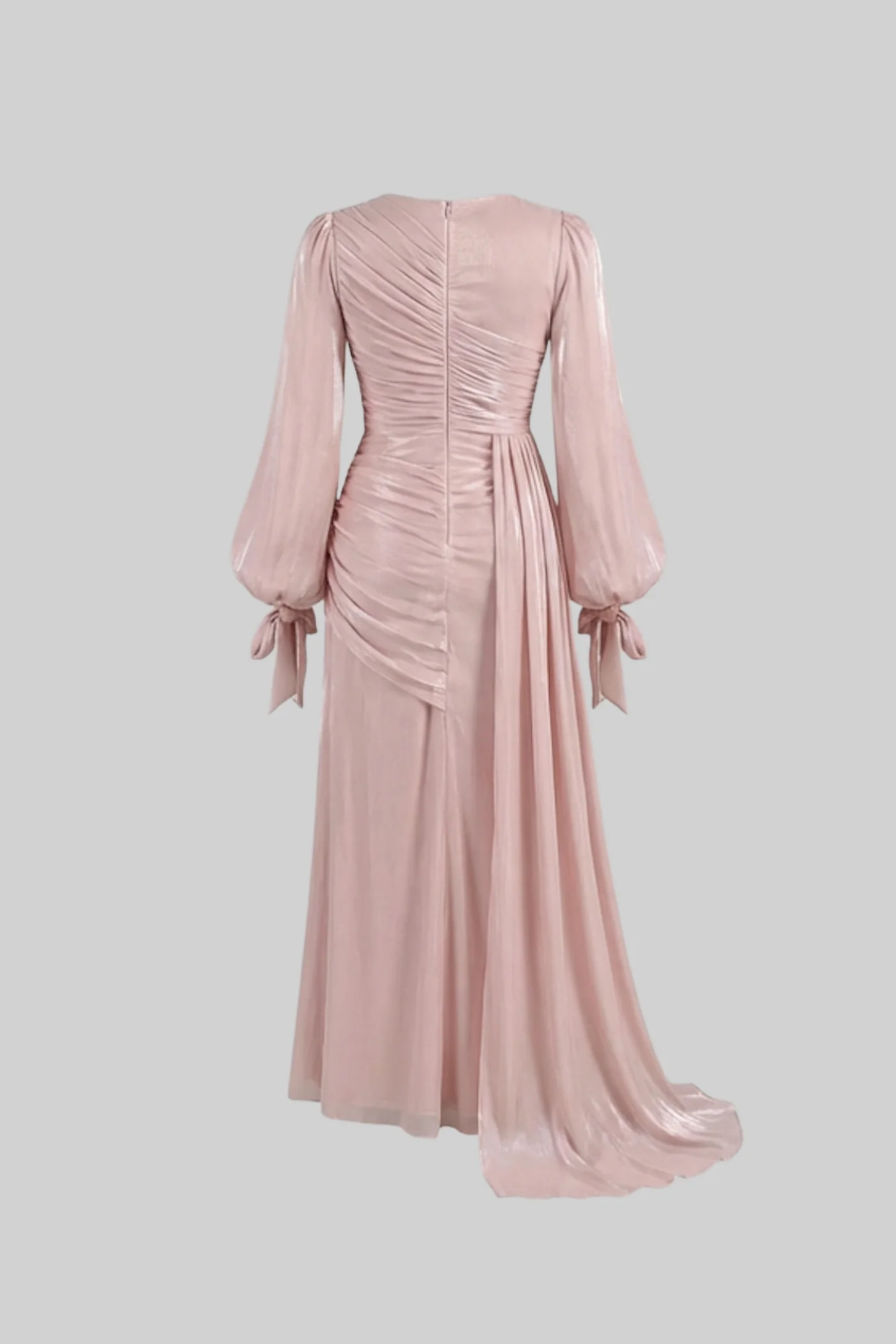 Blush Pink Draped Long-Sleeve Maxi Dress with Gathered Waist