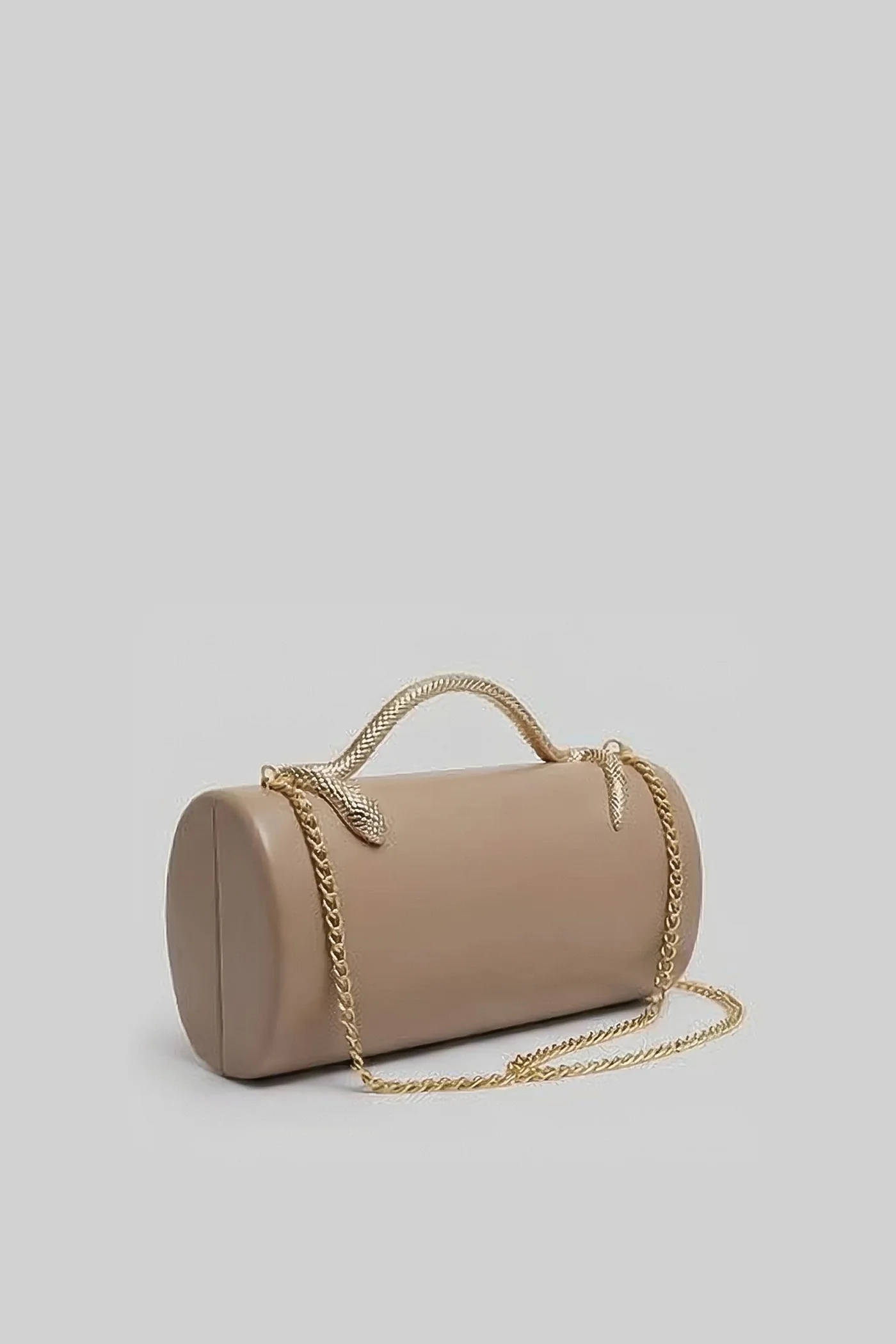 Structured Clutch Bag with Snake Handle And Gold Chain – Khaki